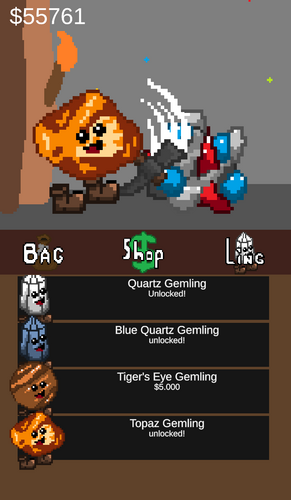 A cute little game where you play as a Gemling, collecting gems to grow your collection and unlock even rarer treasures! Upgrade your strength for the mini-game, or boost the Gemling’s automatic damage over time. Spend your leftover cash to unlock new Gemlings!